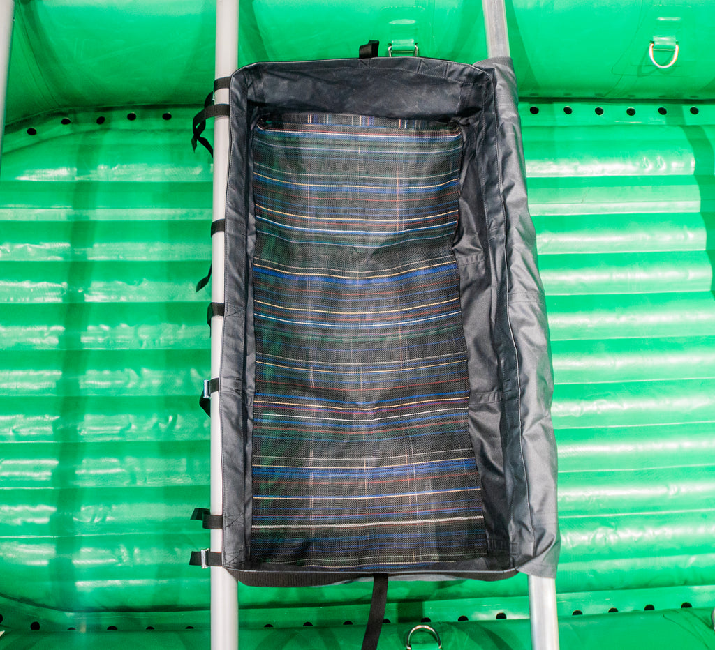 A step up from our original drop bag, this one is made with 1680 denier ballistic nylon with a urethane coating. Same heavyweight polypro webbing and stainless steel buckles as our original. The bottom of the bag is made out of mesh, with a "sleeve" that can be used to hold in a 1" ethafoam pad (not included, see here for options)