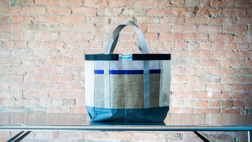 We believe in reduce, reuse, recycle. Our grocery stores also started charging 10 cents for plastic bags. Save the environment and your wallet! Rugged ballistic nylon bottom with multimesh sides and segmented front pocket can carry your groceries or your sandy, wet, smelly river shoes. Preferably not both at the same time.